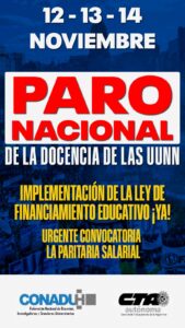 Por ello, CONADU Histórica convoca a un Paro Nacional de 72 horas los días miércoles 12, jueves 13 y viernes 14 de noviembre de 2025, en el marco de la continuidad del Plan de Lucha en todas las universidades del país.