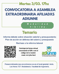CONVOCATORIA A ASAMBLEA EXTRAORDINARIA AFILIADXS ADIUNNE