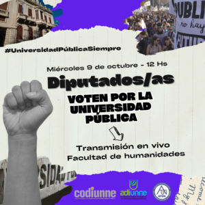 Los trabajadores docentes, no-docentes y estudiantes de la UNNE concentramos mañana 11 am en el Hall de la Facultad de Humanidades (meteorito) para proyectar y seguir la sesión de la Cámara de Diputados del miércoles 09/10 que tratara el Veto.